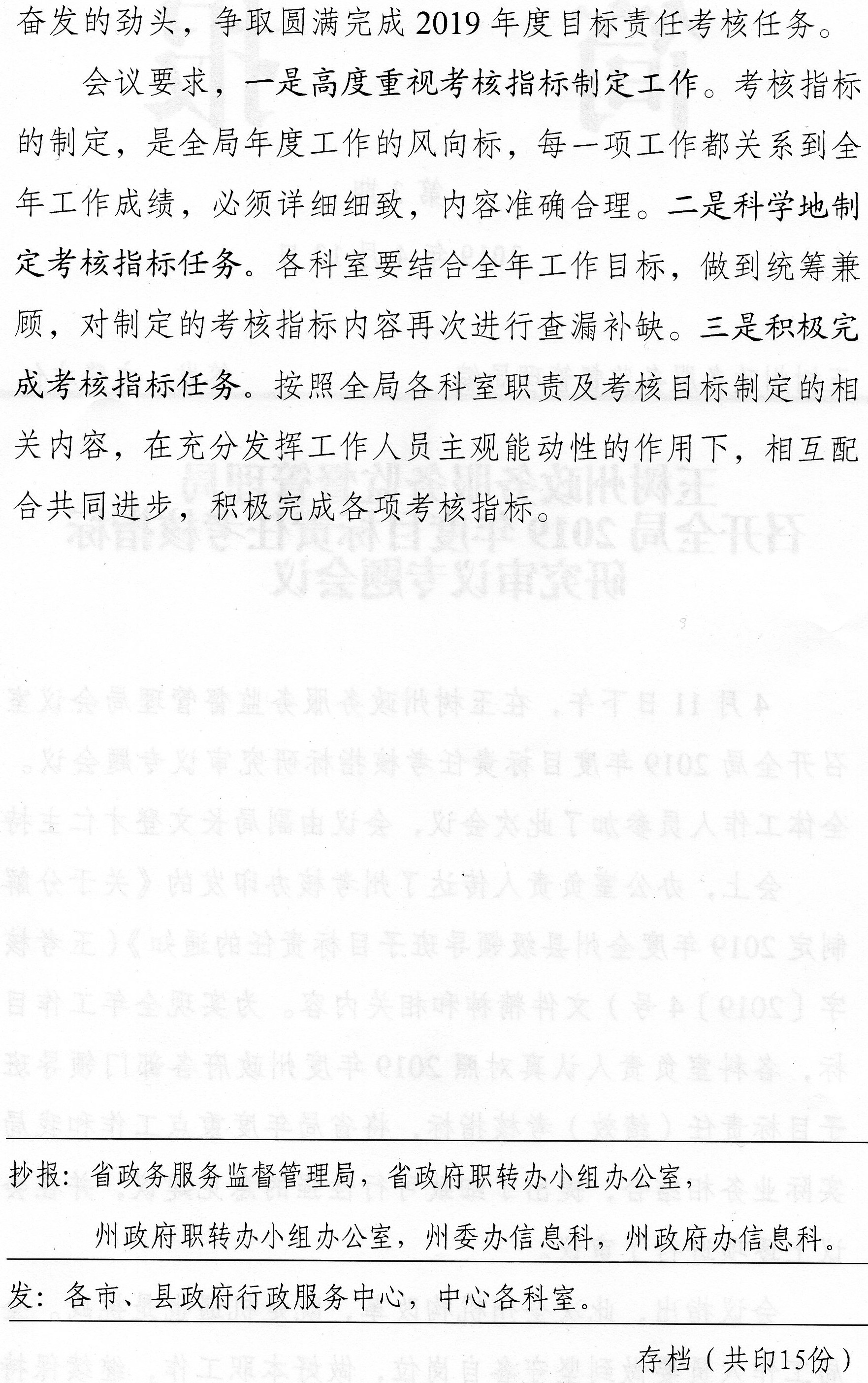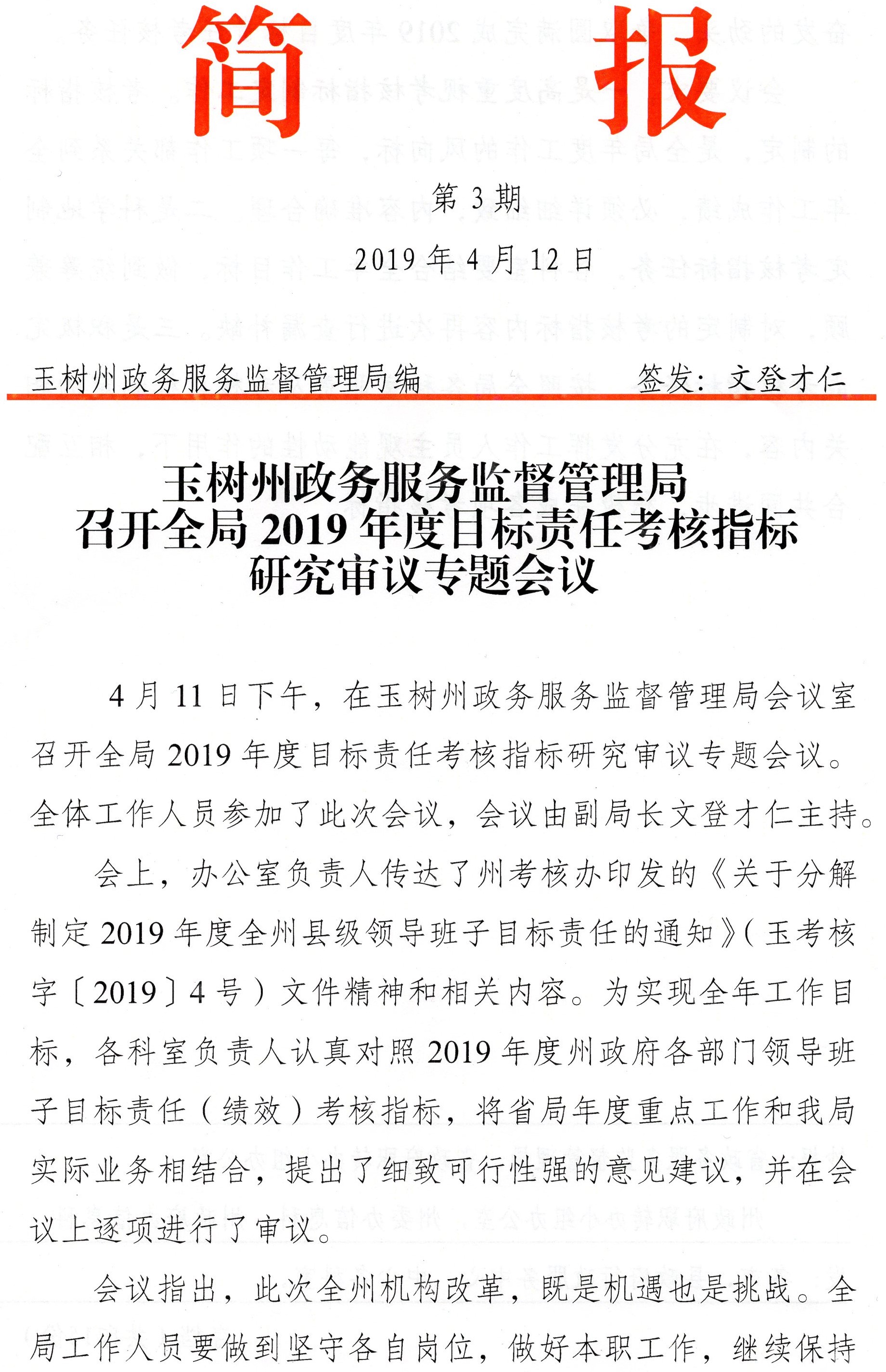 州政务服务监督管理局召开全局2019年度目标责任考核指标研究审议专题会议