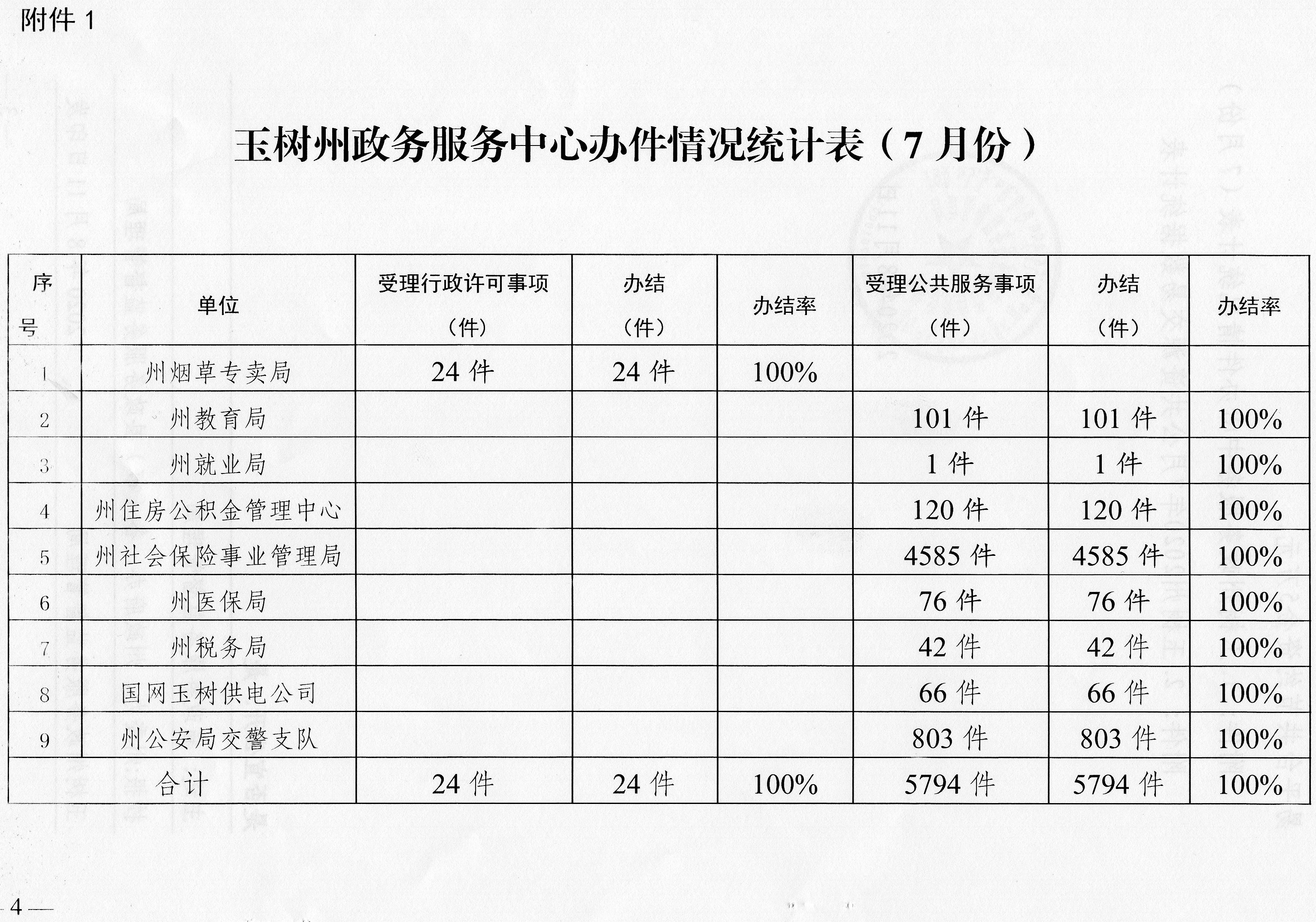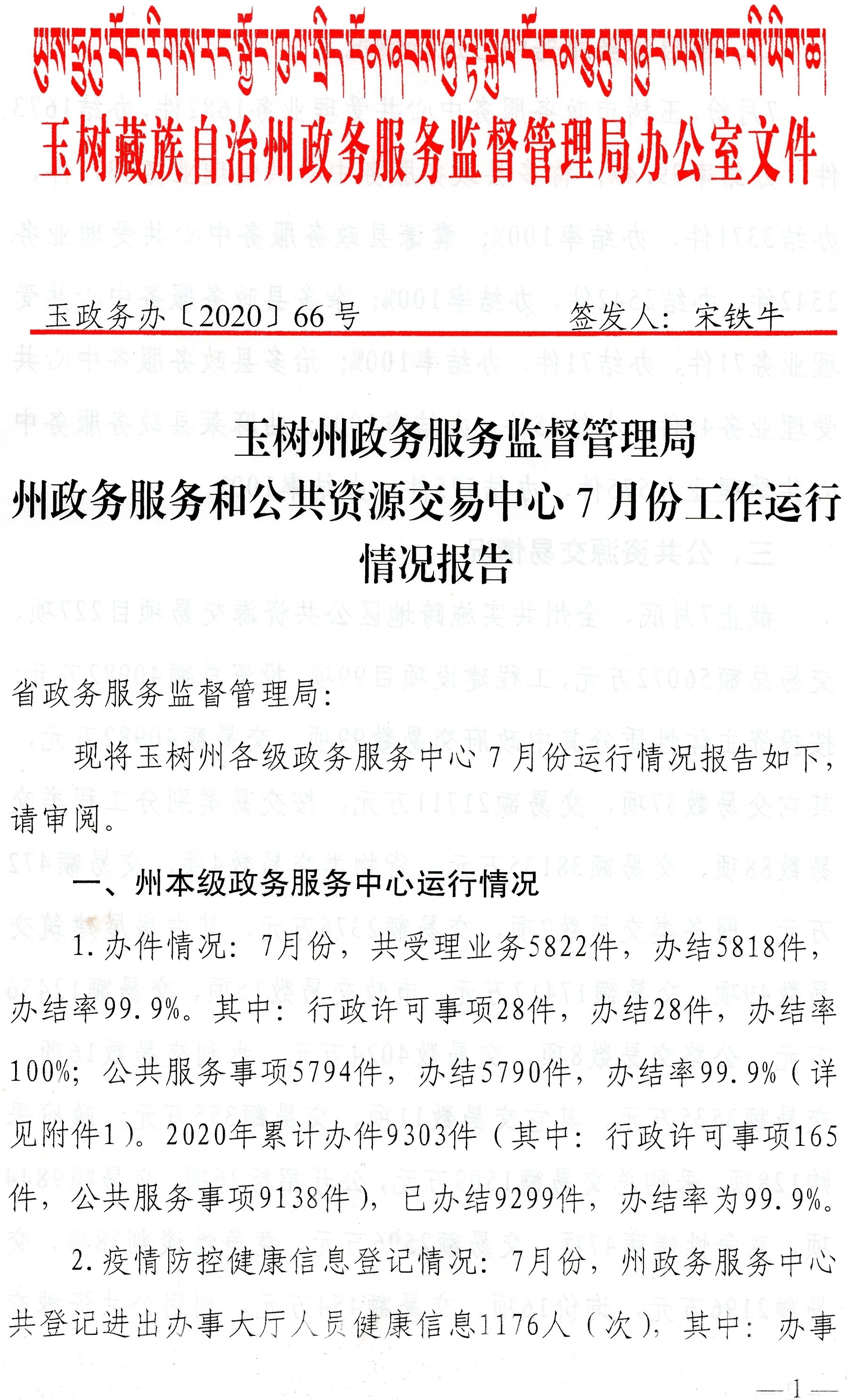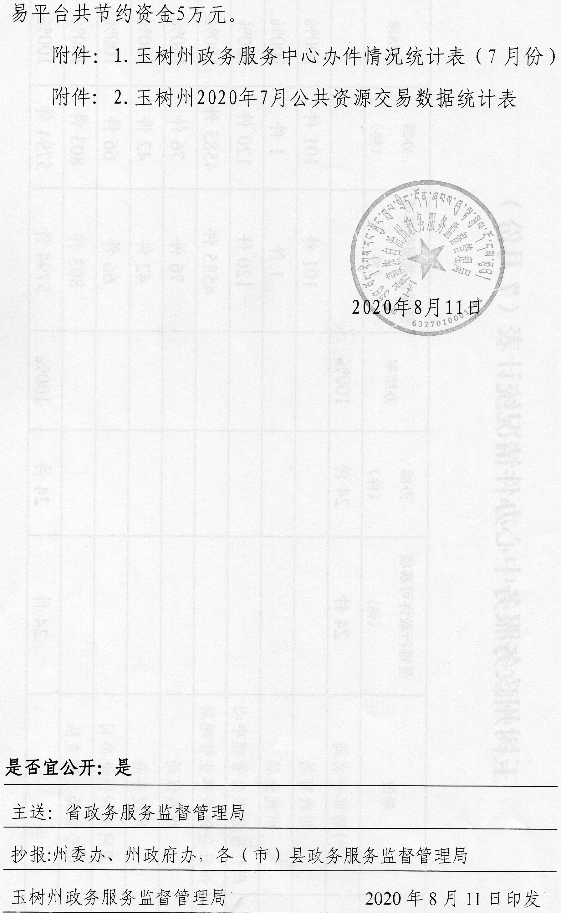 玉树州政务服务和公共资源交易中心7月份工作运行情况报告