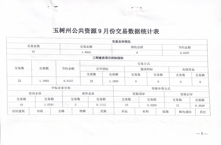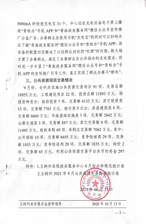玉树州政务服务监督管理局政务服务中心和公共资源交易中心9月份工作运行情况报告